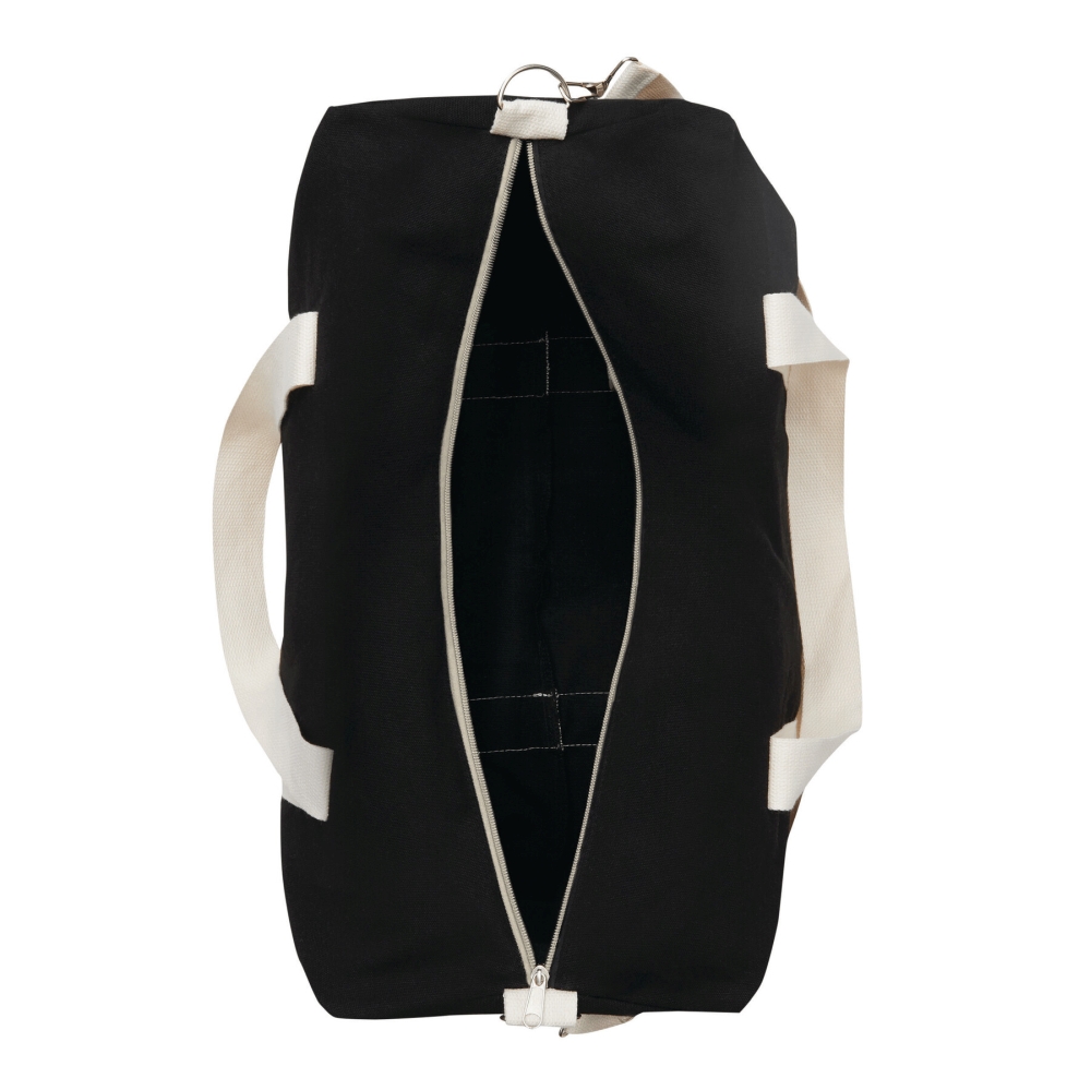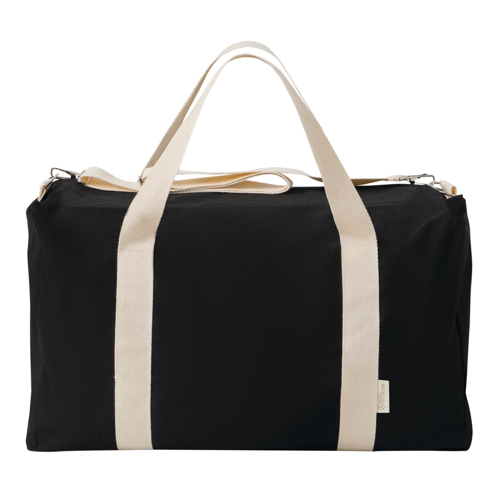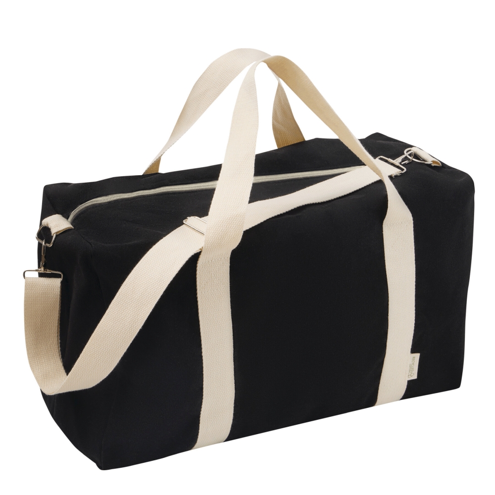Sportovní taška z recyklované bavlny a polyesteru, prostorná hlavní přihrádka na zip, 2 rukojeti, nastavitelný a odnímatelný ramenní popruh. Rozměry: 48,5 x 27 x 21 cm