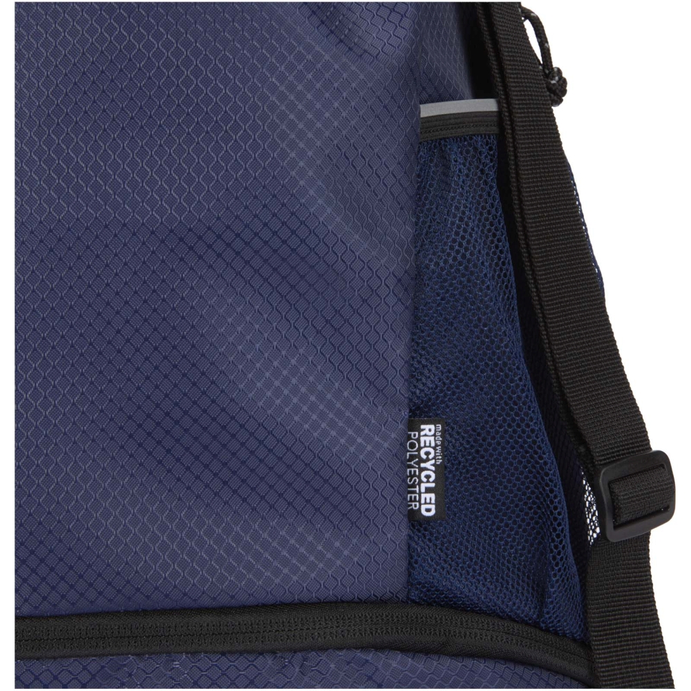 Sportovní stahovací batoh je vyroben z recyklované ripstopové tkaniny s vodoodpudivou úpravou, podšívkou z RPET a reflexními prvky. Je určena pro lidi s aktivním životním stylem a je vhodná pro každodenní cvičení a sportovní aktivity. Taška má prostorný hlavní oddíl, který pojme oblečení, ručník nebo třeba basketbalový míč. Do samostatné spodní přihrádky se vejdou boty nebo použité oblečení odděleně od ostatních předmětů. Součástí jsou také dvě boční síťované kapsy s reflexními detaily, jedna skrytá kapsa na zip na cennosti a nastavitelné ramenní popruhy pro pohodlné nošení. Rozměry: 29 x 47 x 12 cm