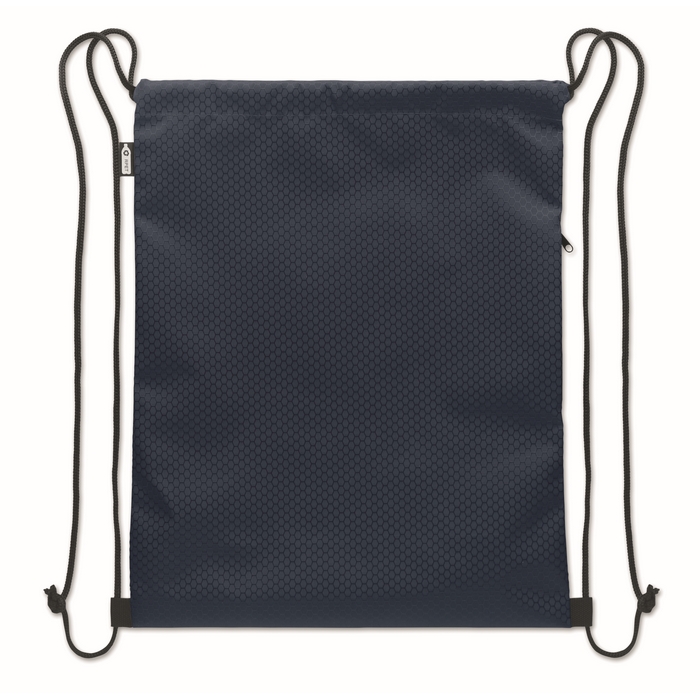 Stahovací batoh z polyesteru RPET 420D s vertikální boční kapsou na zip a podšívkou z materiálu RPET 210D. Pevné šňůrky, objem 4,5 l, maximální nosnost 5 kg. Rozměry: 34 x 42 cm