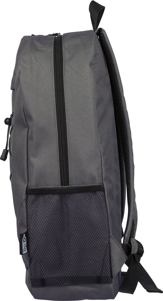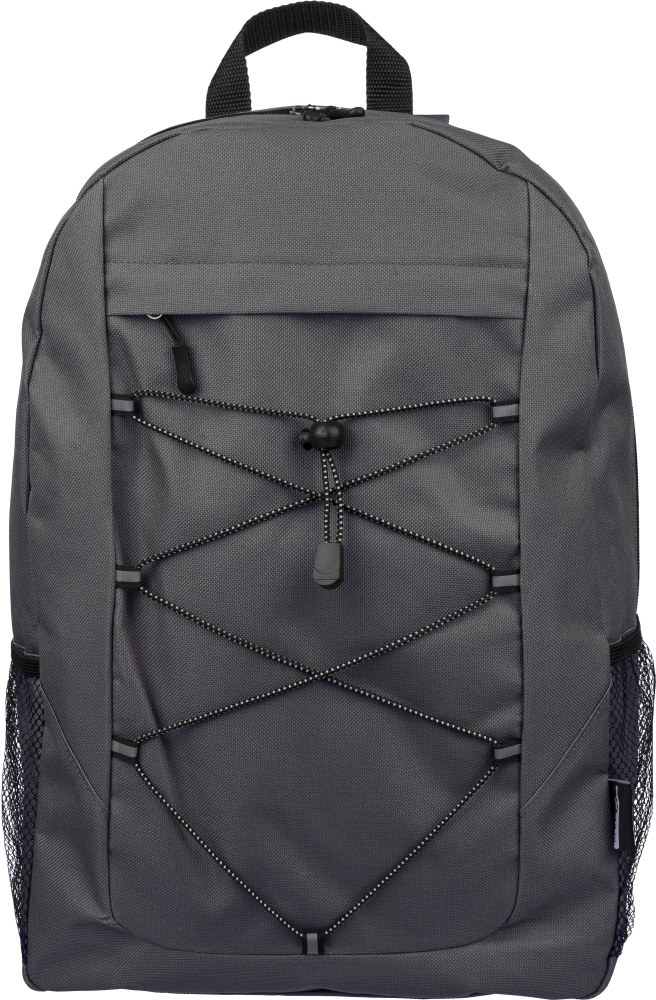 Dobrodružný batoh z rPET polyesteru 600D se zapínáním na stahovací šňůrku a velkým hlavním prostorem na zip. Má boční síťované kapsy, elastické přední pásky, malou přední kapsu na zip, nastavitelné popruhy a štítek rPET. Rozměry: 14 cm x 30 cm