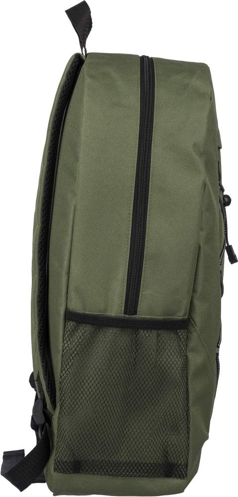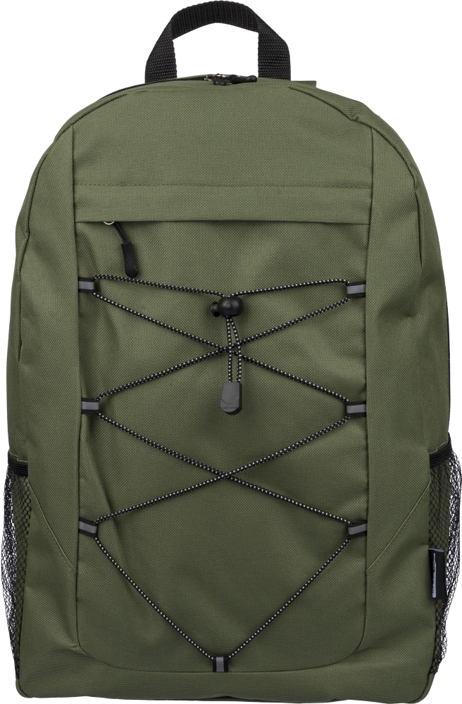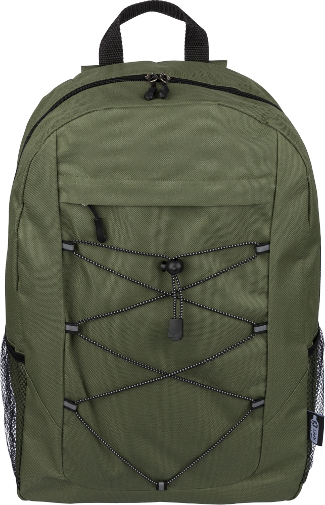 Dobrodružný batoh z rPET polyesteru 600D se zapínáním na stahovací šňůrku a velkým hlavním prostorem na zip. Má boční síťované kapsy, elastické přední pásky, malou přední kapsu na zip, nastavitelné popruhy a štítek rPET. Rozměry: 14 cm x 30 cm