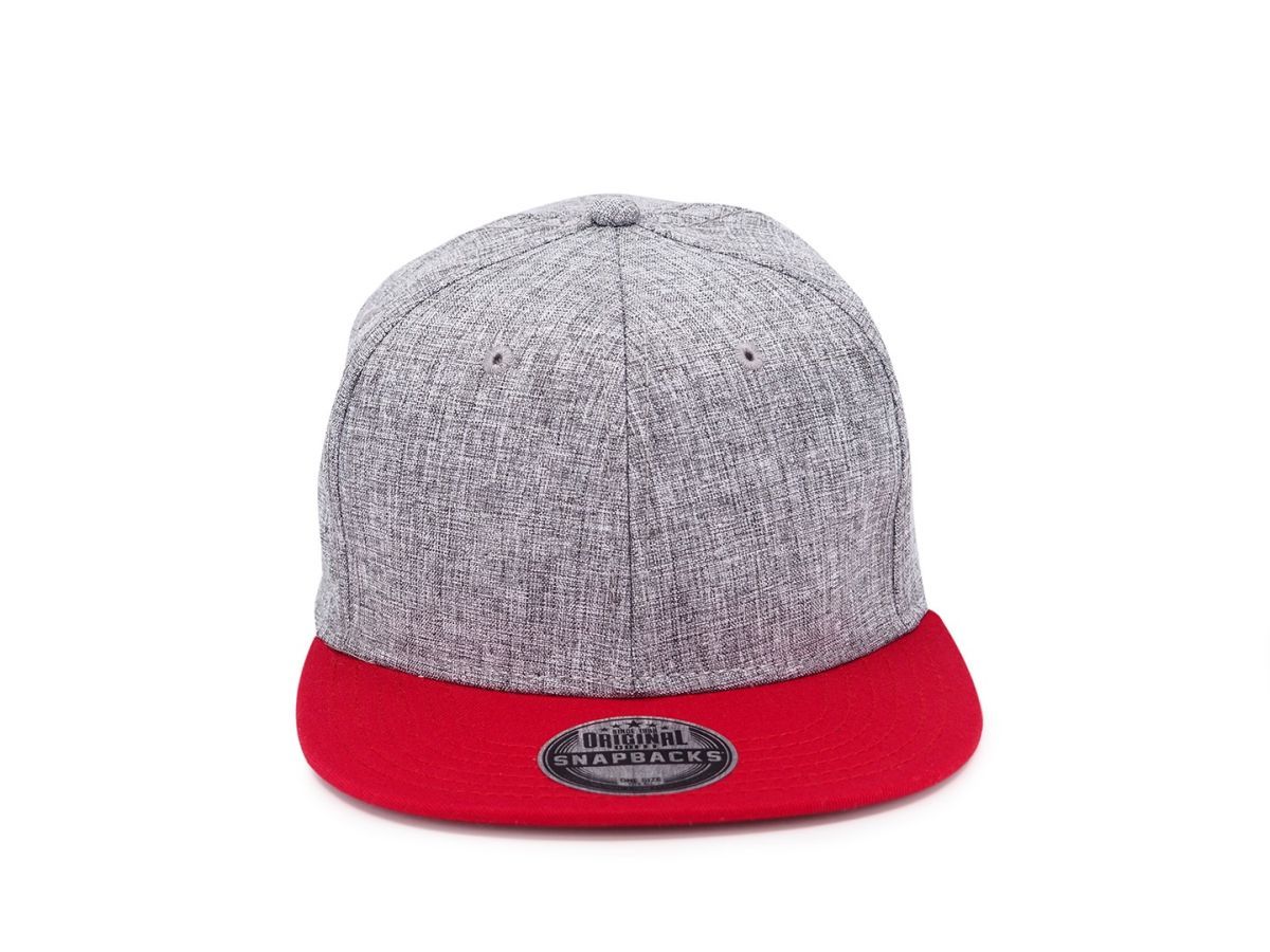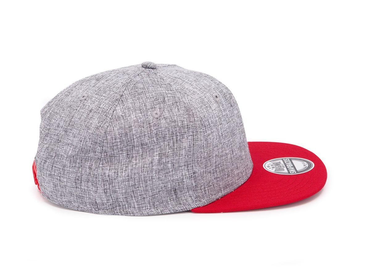 TAMURA Šestipanelová kšiltovka s vyztuženým čelem a plochým kšiltem, šedý melír/červená