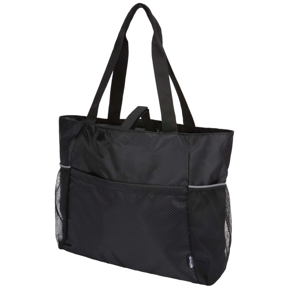 Taška na jógu je vyrobena z recyklované ripstopové tkaniny s vodoodpudivou úpravou, podšívkou z RPET a reflexními prvky. Je navržena tak, aby vám pomohla udržet si pořádek při cvičení ve studiu, na pláži nebo při každodenních pochůzkách. Taška má prostorný hlavní oddíl na zip a uvnitř i vně několik organizačních kapes. Elastické popruhy se zapínáním na suchý zip nahoře umožňují bezpečné nošení podložky na jógu nebo plážové podložky. Taška má prostor pro podložku, ručník, láhev s vodou, náhradní oblečení a osobní věci, takže je vhodná jak pro cvičení, tak pro každodenní aktivity. Rozměry: 40 x 34 x 14 cm
