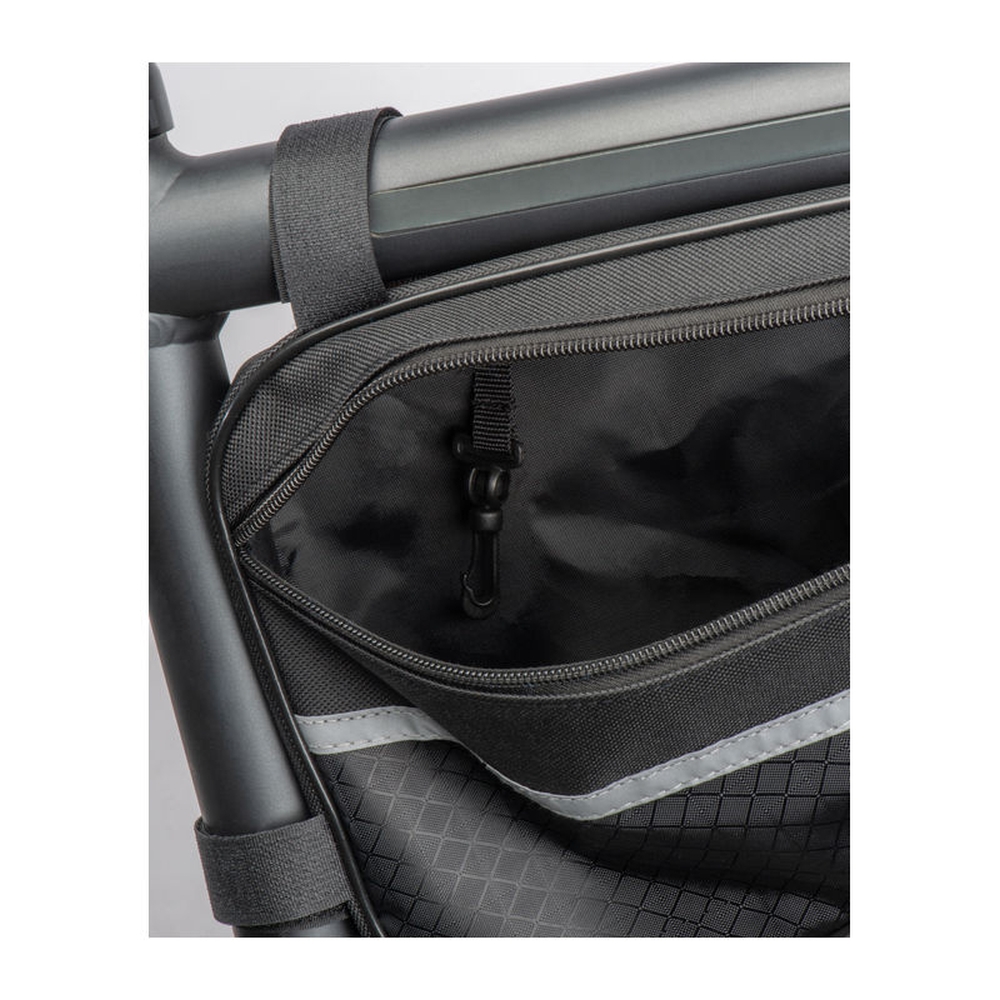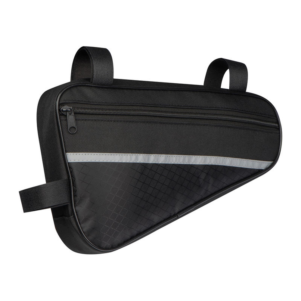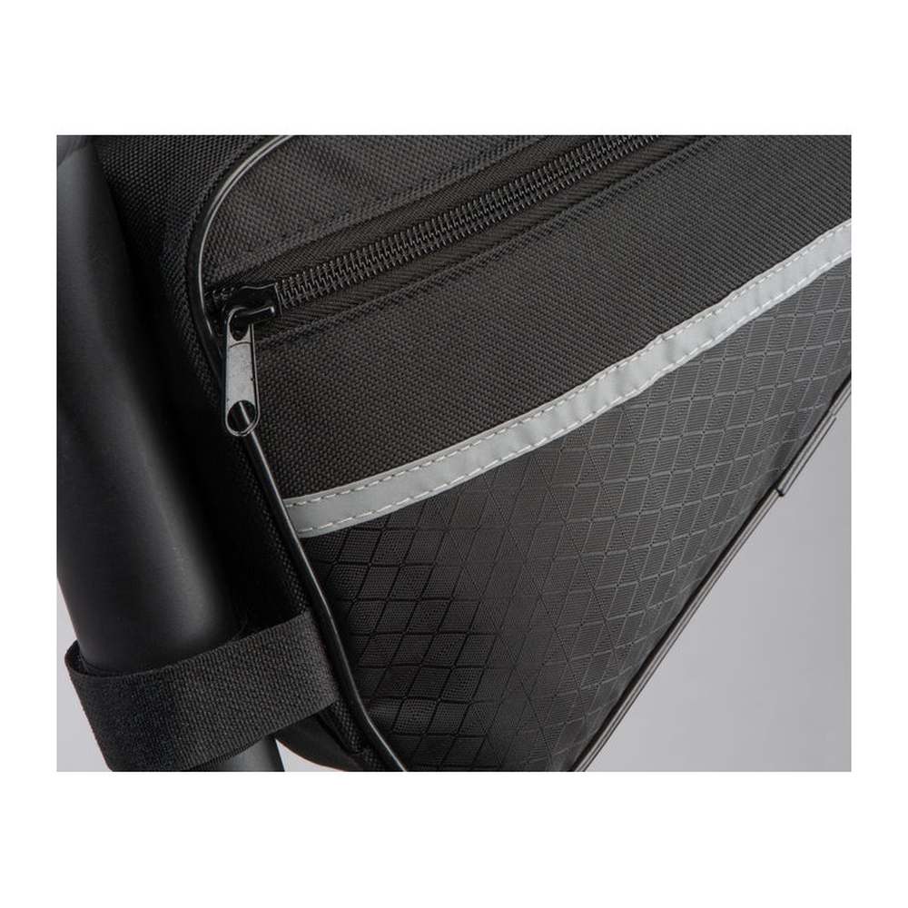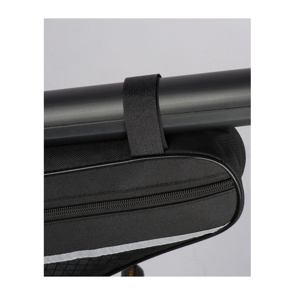 Taška na kolo z odolného 600D polyesteru s reflexními pásky. Tašku je možné jednoduše připevnit na střední rámovou tyč pomocí držáků a nabízí dostatek místa pro všechny důležité pomůcky. Rozměry: 30 × 7,5 × 19 cm