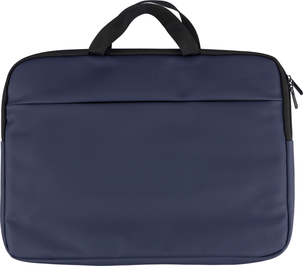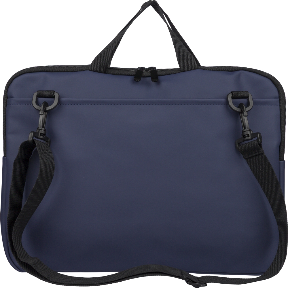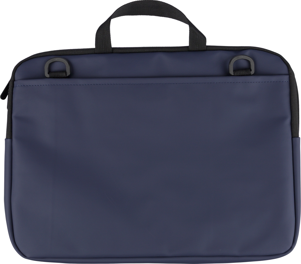 Brašna na notebook z recyklovaného PU pro zařízení do 15 palců se 4mm polstrováním a podšívkou z recyklovaného materiálu 210D. Má přední kapsu na zip, zadní kapsu na suchý zip, dvě krátká ucha, nastavitelný ramenní popruh a malé recyklované logo na vnitřním štítku. Rozměry: 28 cm x 40 cm