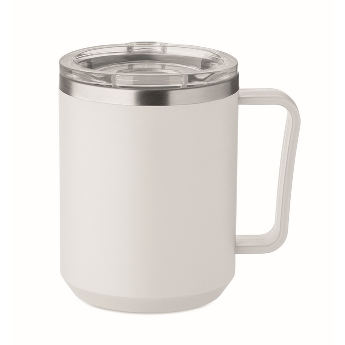 Termohrnek s vnitřkem z 90 % recyklované nerezové oceli a 10 % nerezové oceli a vnějškem z recyklovaného PP. Průhledné posuvné víčko z AS. Objem 400 ml. Rozměry: 11.6 x 11.5 cm