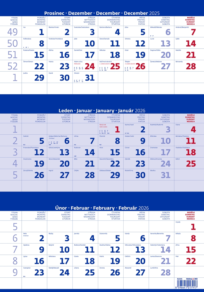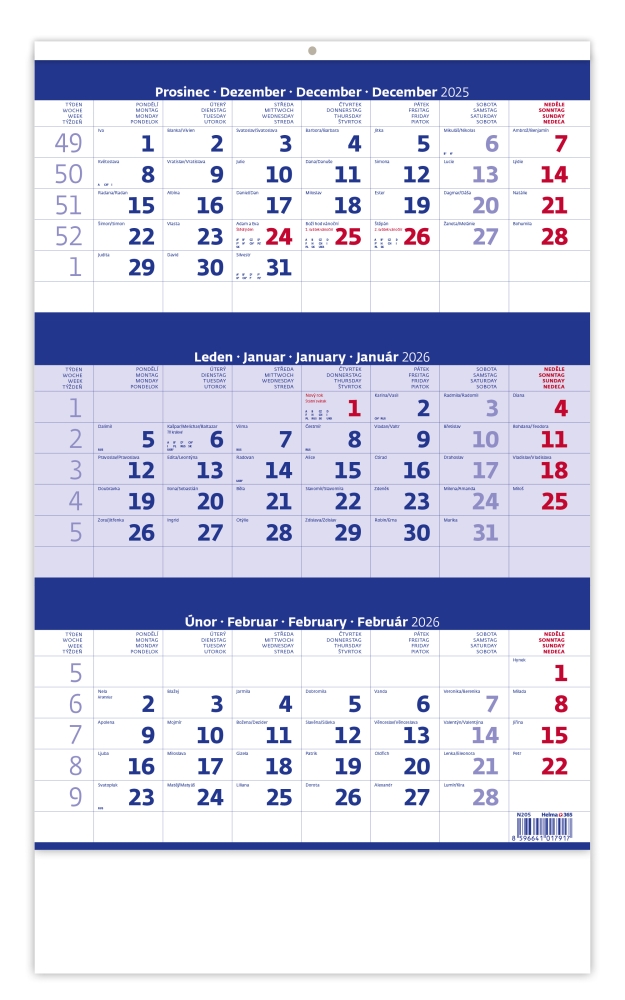 Tříměsíční kalendář modrý 2027
