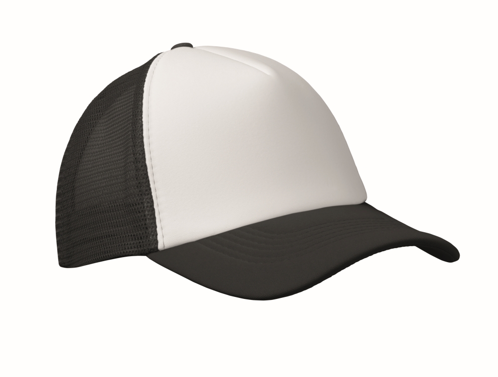 Trucker´s čepice z polyesteru 140-150 gr/m2 (pěna, snap zapínání, 5 panelů) Speciální pro sublimaci. Rozměry: 22 x 17 x 11 cm