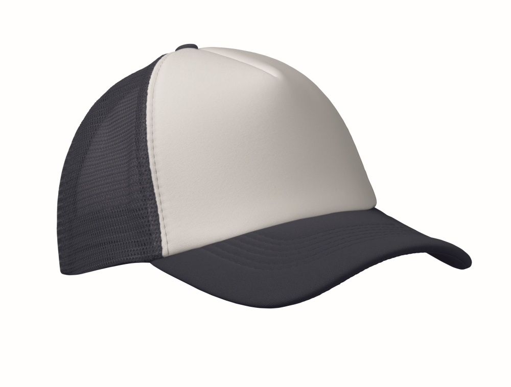 Trucker´s čepice z polyesteru 140-150 gr/m2 (pěna, snap zapínání, 5 panelů) Speciální pro sublimaci. Rozměry: 22 x 17 x 11 cm
