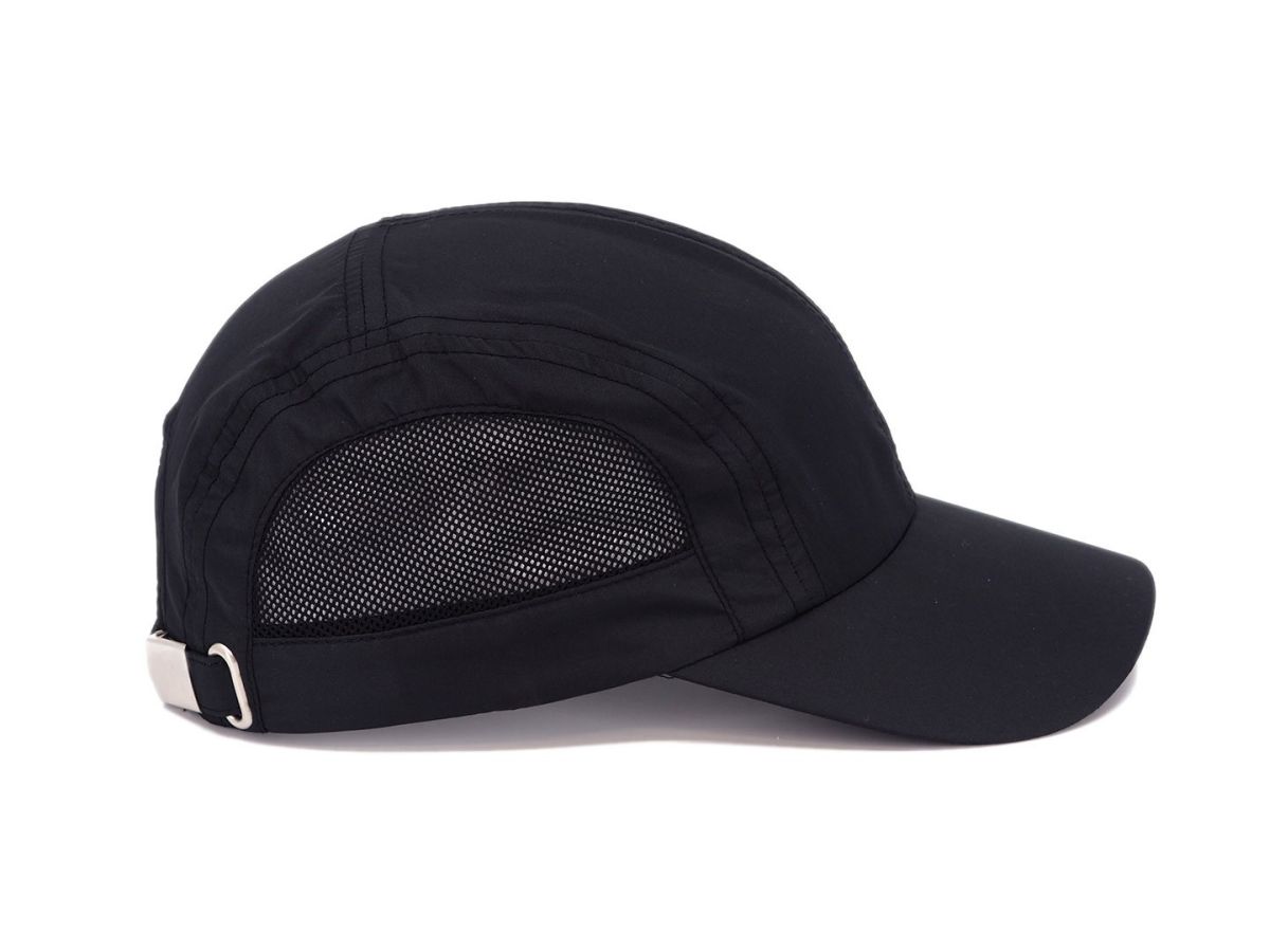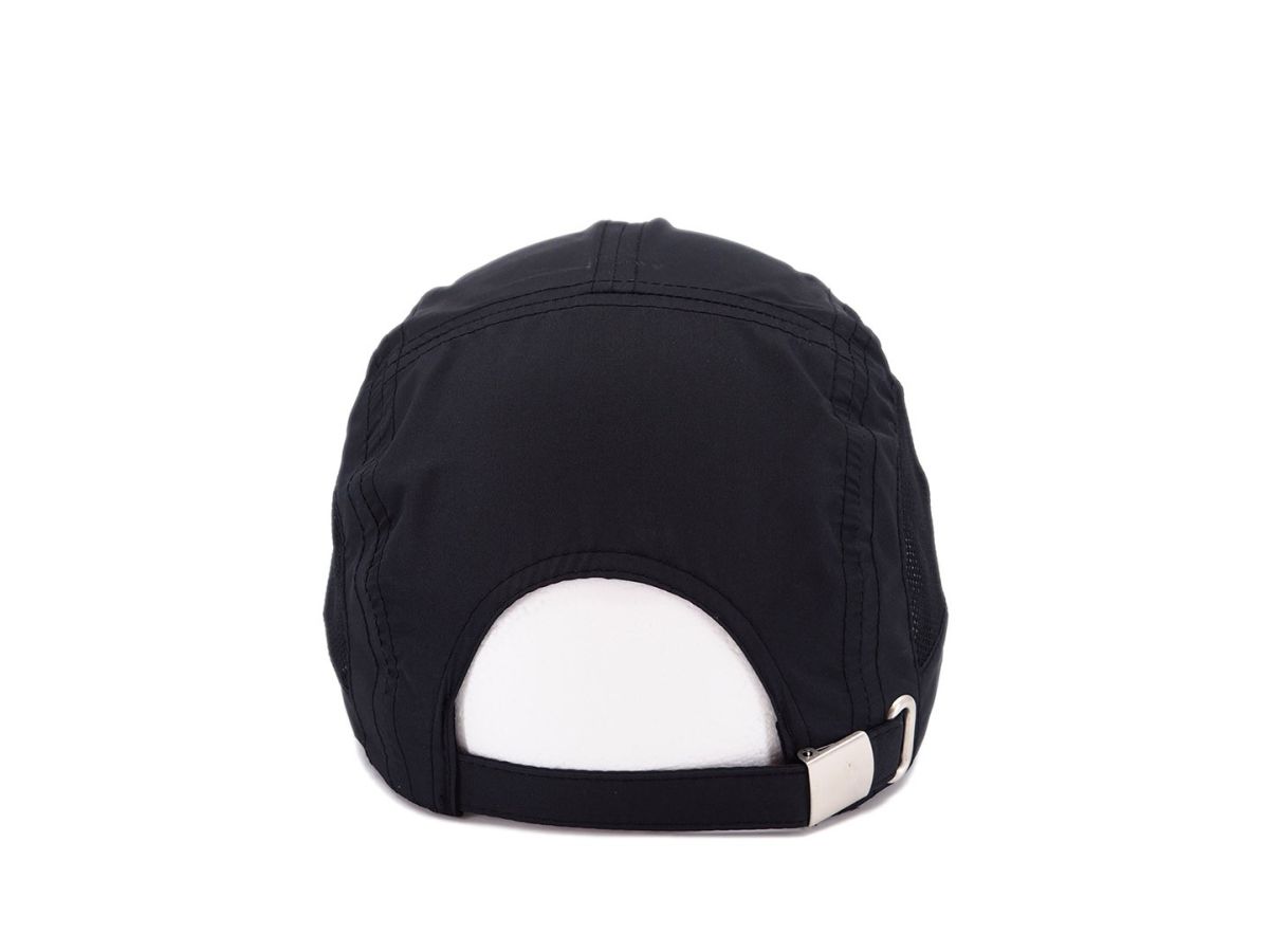 Vzdušná lehká čepice vhodná na sporty, zapínání na kovovou přezku, potící pásek a vnitřní lem, polyester.