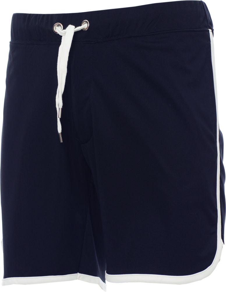 Unisexové sportovní bermudy se stahovací šňůrkou v pase, s patkou se zipem, dvěma postranními kapsami a kontrastním lemováním.