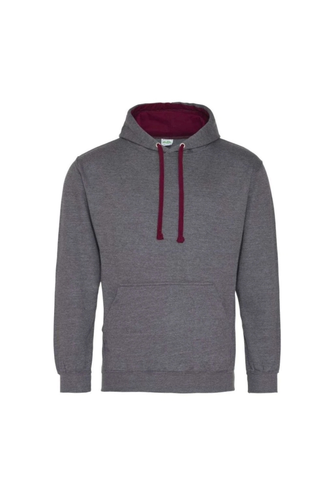 Unisex mikina s kapucí VARSITY HOODIE, tmavě šedý melír/vínová, velikost M