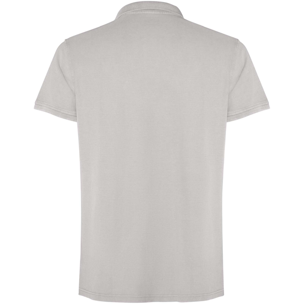 Unisex polokošile s krátkým rukávem. Sepraný vzhled. Žebrovaný límec a manžety 1 × 1 s bočními otvory. Krycí steh v tónu látky. Zapínání na tři knoflíky.