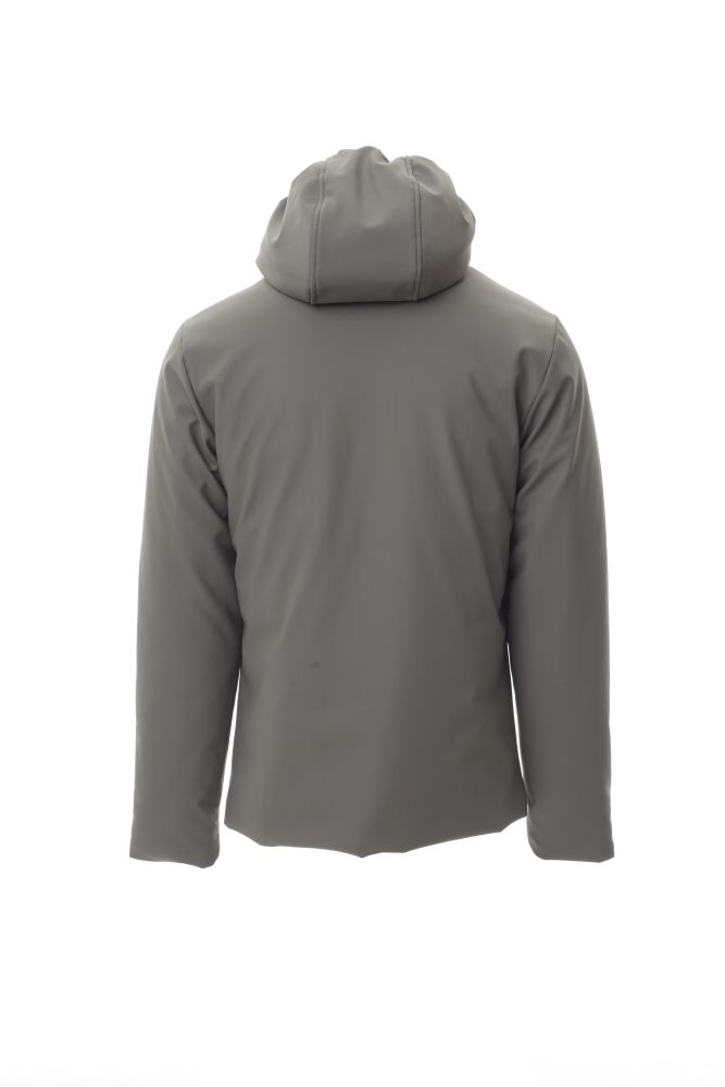 WP 8000 mm H2O, WVT 3000 g/m2 24h. Pánská soft-shellová zateplená bunda s kapucí, plastovým celozipem SBS s kovovým jezdcem s aretací „semi-autolock“, dvě vnější kapsy na zip, jedna vnitřní kapsa na zip.