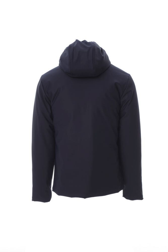 WP 8000 mm H2O, WVT 3000 g/m2 24h. Pánská soft-shellová zateplená bunda s kapucí, plastovým celozipem SBS s kovovým jezdcem s aretací „semi-autolock“, dvě vnější kapsy na zip, jedna vnitřní kapsa na zip.
