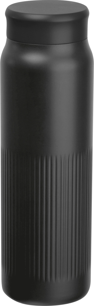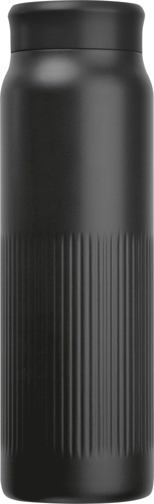 Dvoustěnná vakuová nerezová termoska z recyklovaného materiálu s výraznou vroubkovanou strukturou, kapacita 700 ml. Rozměry: o 7,2 x 23 cm