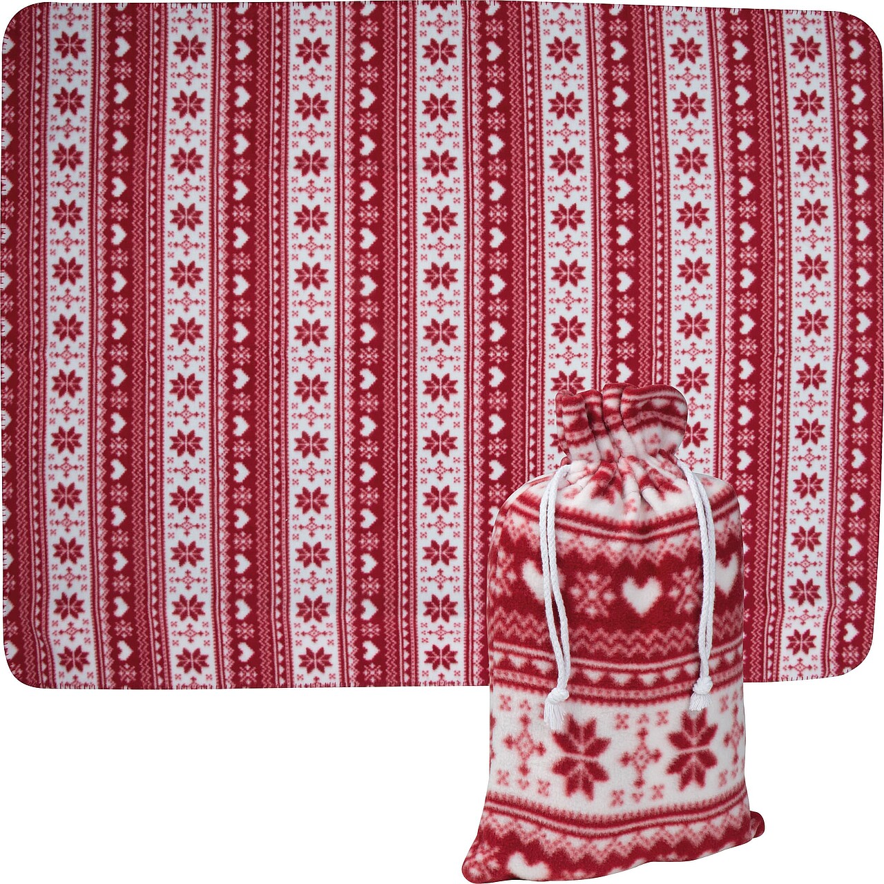 Fleecová deka (200g/m2) s vánočním motivem dodávaná se stahovacím obalem. Vhodná na cesty. Rozměry: 10 x 6 cm.