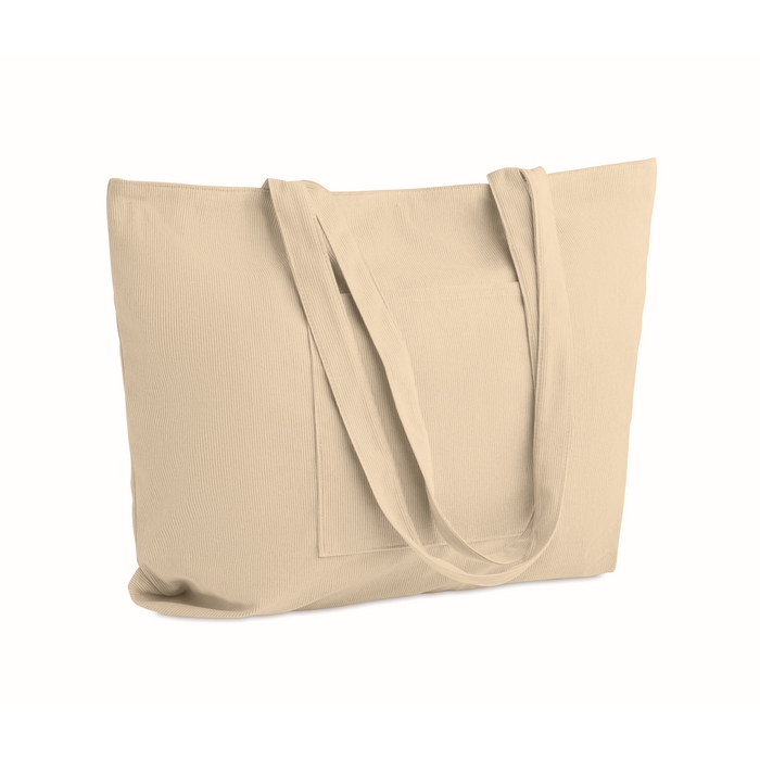 Velká nákupní/plážová taška z polyesterového manšestru se zapínáním na horní zip, otevřenou přední kapsou a vnitřní kapsou. 220 g/m2. Rozměry: 39 x 12 x 37 cm