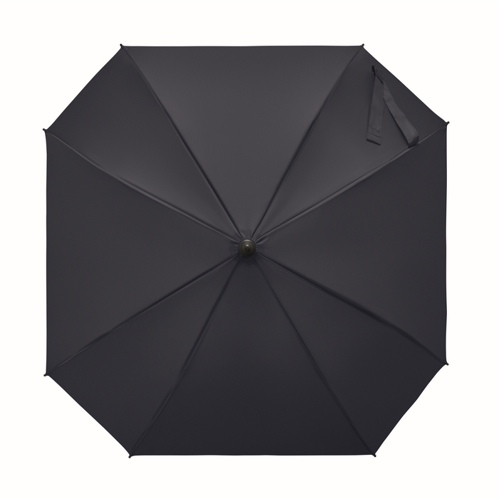 23palcový větruodolný čtvercový deštník s automatickým otevíráním z polyesteru 190T pongee. Tyč a žebra ze sklolaminátu a rukojeť z ABS s gumovou povrchovou úpravou. Rozměry: O104 x 79.5 cm