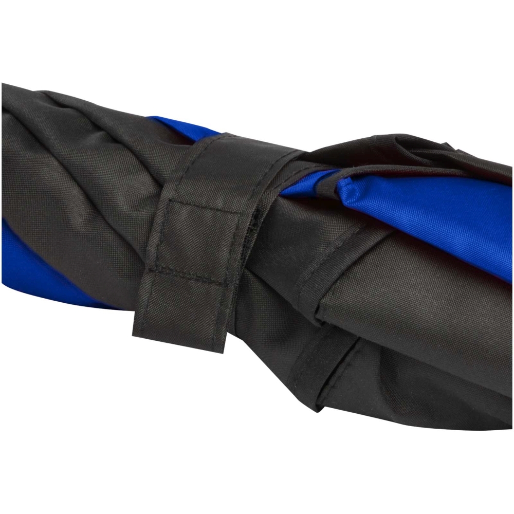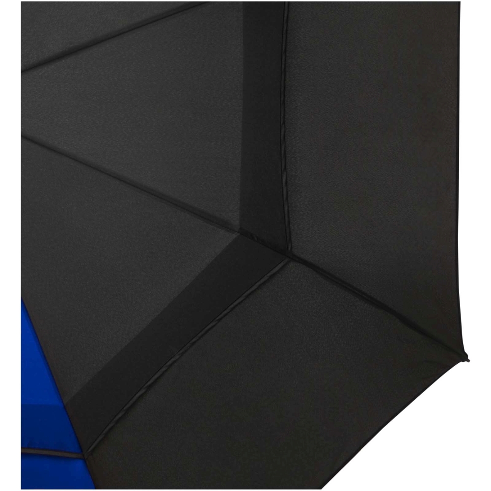 Větruodolný golfový deštník disponuje prostornou polyesterovou stříškou o šířce 140 cm, která pohodlně chrání více lidí před nepřízní počasí. Robustní laminátová tyč a rám poskytují vynikající flexibilitu a silnou odolnost vůči silnému větru. Praktická plastová rukojeť s tlačítkem pro automatické otevírání zajišťuje rychlé a snadné ovládání. Kontrastní panely stříšky představují perfektní příležitost pro výrazný a poutavý branding – ideální pro akce, reklamu nebo každodenní použití. Rozměry: 106 x 6 cm