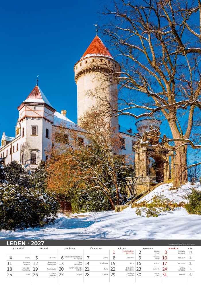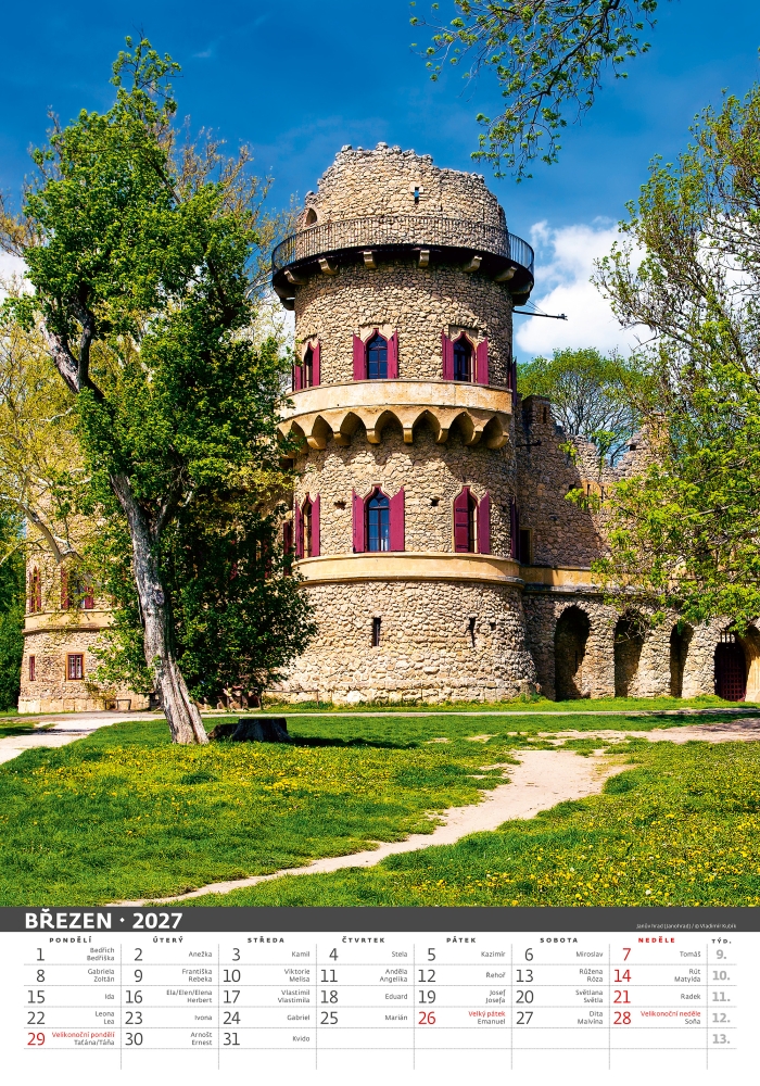 Naše hrady a zámky 2027, nástěnný kalendář, prodloužená záda