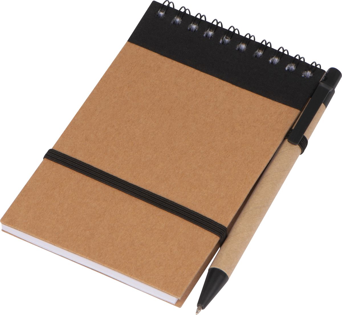 Menší poznámkový blok s kroužkovou vazbou. Blok má 70 linkovaných stran, desky z ekologického materiálu, gumičku na uzavření a pero. Rozměry: 9 x 14,4 x 0,9 cm.
