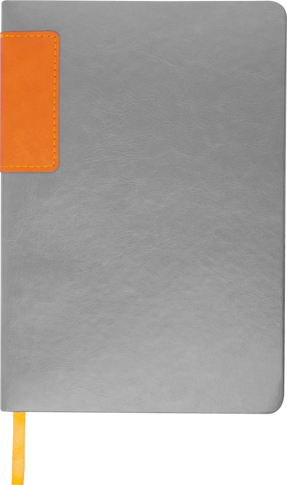 Šedý zápisník A5 s recyklovaným PU obalem, 160 linkovaných stran (80 listů) z recyklovaného papíru, s barevnými okraji. Rozměry: 14,5 x 20,7 x 1,1 cm