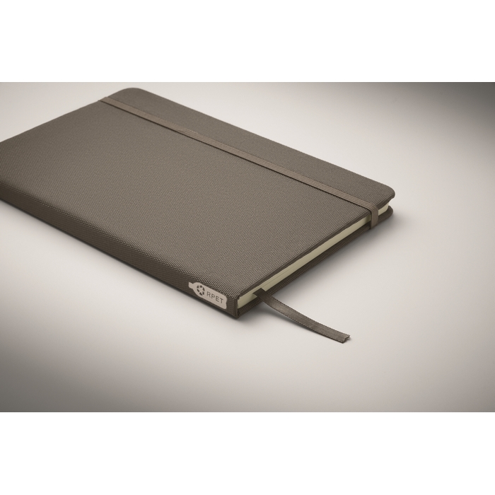 Zápisník A5 s tvrdou obálkou z 600D RPETu. 160 linkovaných stránek z recyklovaného papíru (80 listů). Zavírací gumička a a záložka v ladící barvě. FSC®-certified | FSC MIX CREDIT, P7.1, FSC-C213206 Rozměry: 21 x 14 x 1.3 cm
