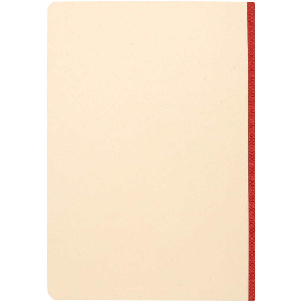 Zápisník formátu A5 s měkkou obálkou, zaoblenými rohy a 72 linkovanými listy papíru o gramáži 90 g/m2. Obálka je vyrobena z RPET a z papíru z cukrové třtiny. Rozměry: 21 x 14,5 cm