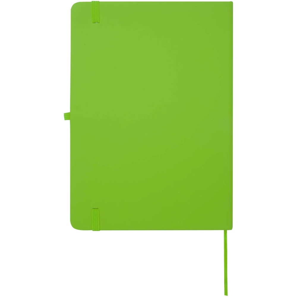 Zápisník A5 s pevnou obálkou a zaoblenými rohy je nejen skvělým pomocníkem v kanceláři, ale také ideální příležitostí k propagaci vaší značky. Lepenkový zápisník má na dotek měkkou obálku a 80 linkovaných listů v krémové barvě o gramáži 70 g/m2, což je ideální pro zapisování rychlých nápadů nebo podrobných poznámek. Zápisník má poutko na pero, elastický uzávěr, záložku a rozšiřitelnou kapsu. Rozměry: 21 x 14,5 cm
