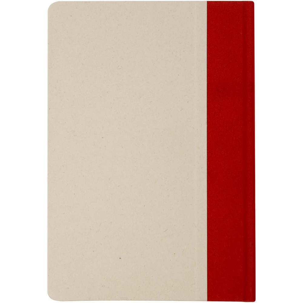 Zápisník s pevnou vazbou A5 se zaoblenými rohy a 80 linkovanými listy s gramáži papíru 90 g/m2. Obálka je vyrobena z materiálu RPET a papíru z cukrové třtiny. Rozměry: 21 x 14,5 cm
