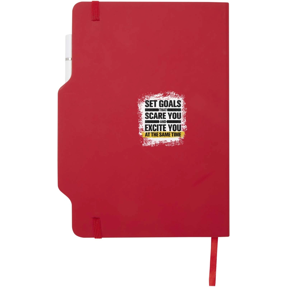 Zápisník A5 s pevnou obálkou s kombinací pera/tužky obsahuje 80 linkovaných listů papíru v krémové barvě o gramáži 70 g/m2, zaoblené rohy, elastické zavírání a záložku. Pero je dvouhlavé, kde na jedné straně je pero s černým inkoustem a na druhé straně tužka. Šířka psací stopy pera: 1000 metrů. Rozměr hrotu: 1,00 mm. Rozměry: 21 x 14,5 cm